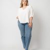 Va a ser tu comodín en tu armario. Esta blusa es levemente acampanada con tajos laterales y escote en V.