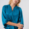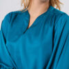 Tiene cuello y escote en V, con mangas ¾ y un andar liviano y muy sedoso.