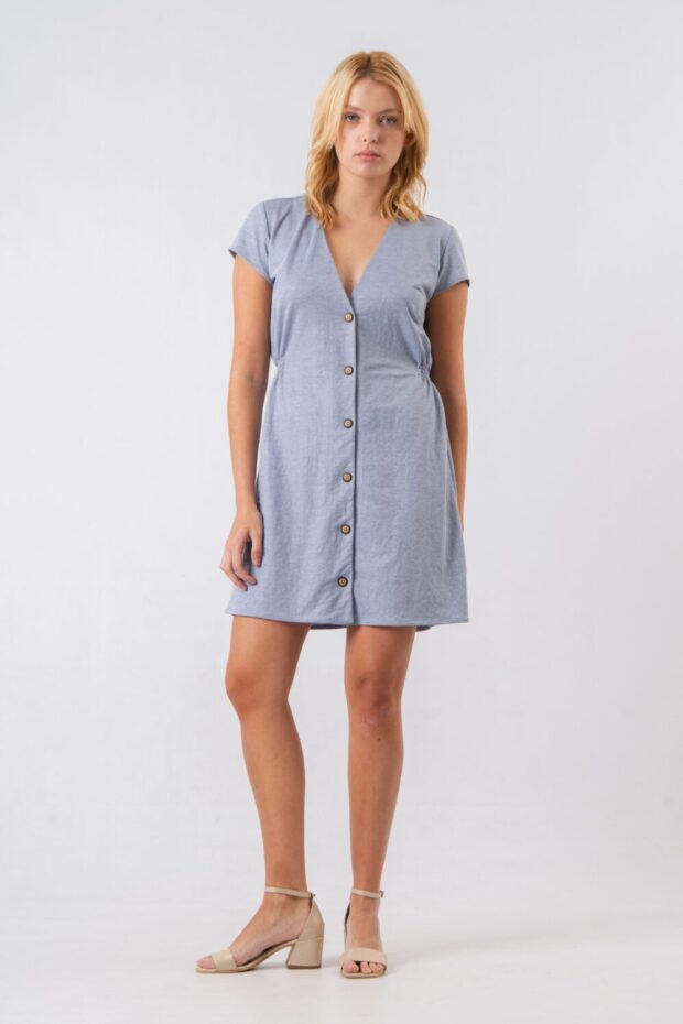4 cuotas sin interés de $ 32.500,00. (débito)Vestido corte escote V con botones de coco en delantero. Tiene la particularidad de entallar cintura con un detalle de confección.