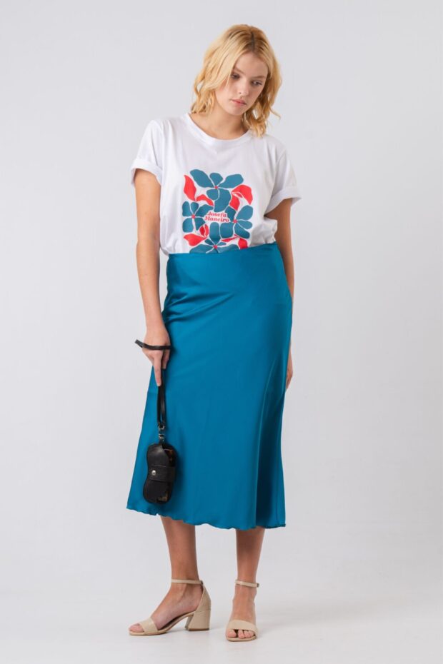 4 cuotas sin interés de $ 34.500,00. (débito)Falda clásica de tiro medio, largo midi. Realizado en una tela muy liviana y sedosa. Tiene elastico en cintura y cierre lateral.