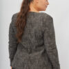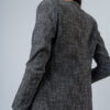 Clásico y minimalista, corte a la primera cadera escote v sin solapa y entalle en cintura.