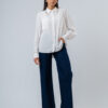 De corte clásico levemente acampanada, manga larga con regulador para dejarla ¾. Es una prenda atemporal que te da muchas opciones de uso. Tiene una pasamaneria en frente del cuello que levanta el look y le da brillo al rostro.