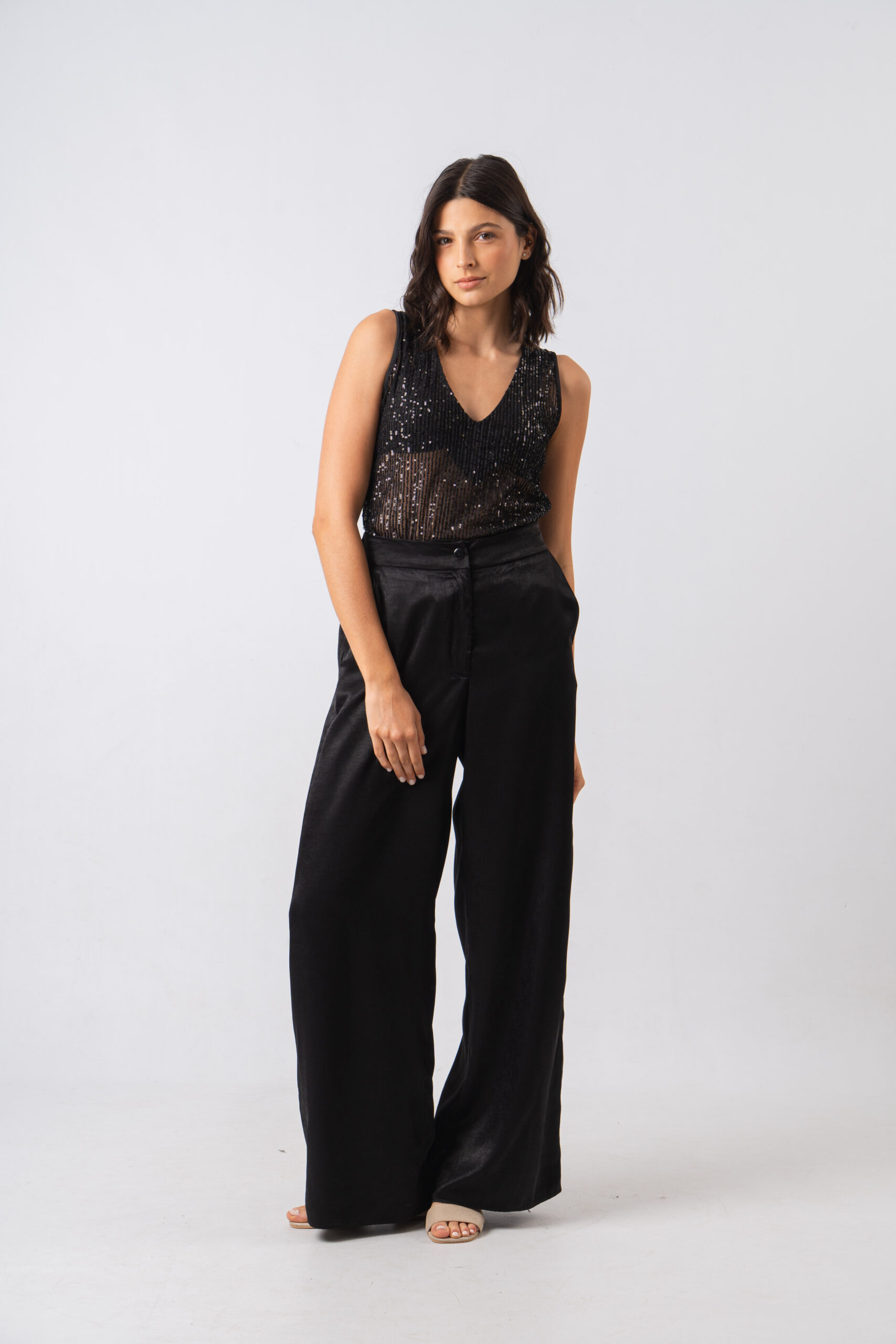 4 cuotas sin interés de $ 42.500,00. (débito)El pantalón de sitúela elegante y relajada. De piernas anchas y tela fluida. Tiene tiro alto y elástico en cintura trasera para aportar mas comodidad en la zona del abdomen.