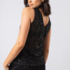 Básica y sofisticada, escote en V en frente y espalda, realizada en tul bordado con lentejuelas negras. Usalo con el Pantalón Palazzo para un look nochero o con el Jean Mom Blanco para una salida de tardecita.